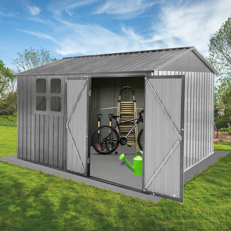 Metal garden sheds 10ftx8ft outdoor storage sheds Grey with window