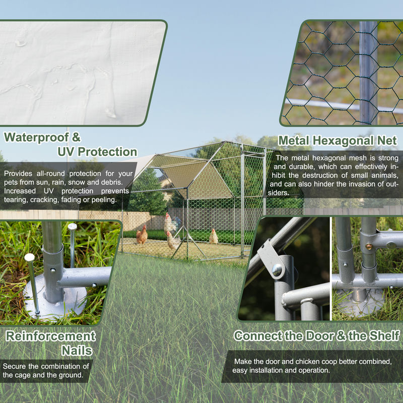 - Featuring galvanized coop, robust steel tubes with eco-friendly power coating finishing, guaranteed to last for years. The coating is protective and resists rust, corrosion, and fading so that the coop is weatherproof and of great durability.