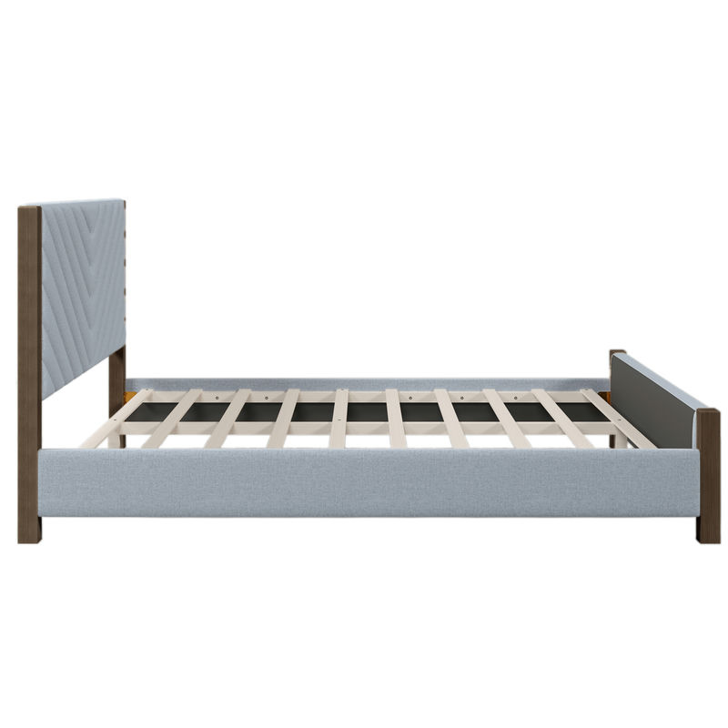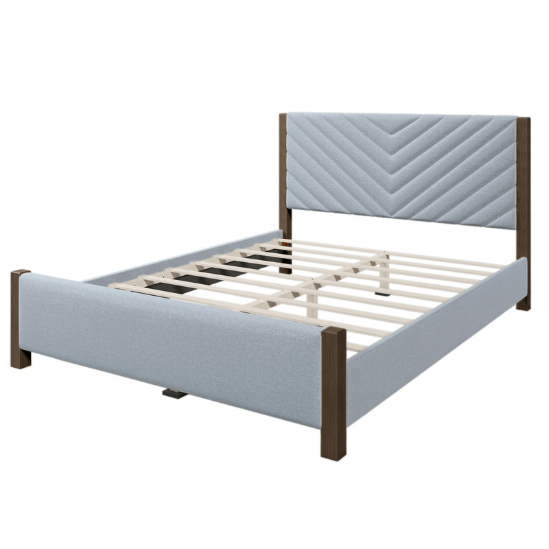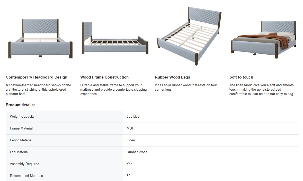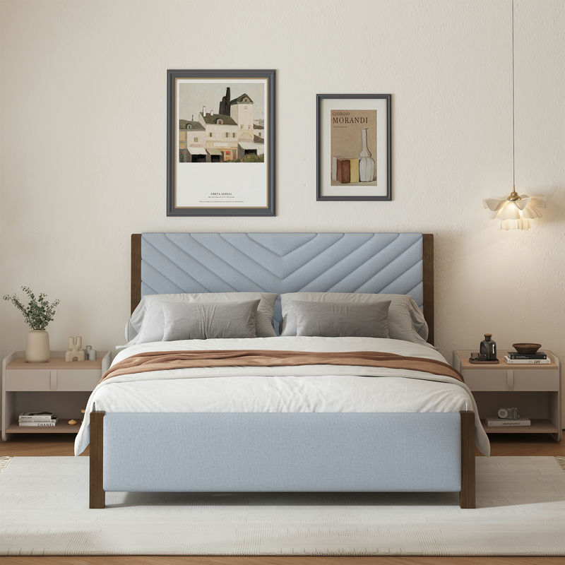 - Tasteful details, modern style: Packed with a bold symmetrical geometric headboard and foam padded upholstered frame bringing superior style and comfort, this platform bed puts a modern spin on traditional design.